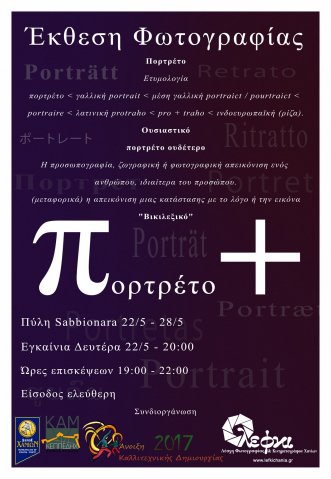 Η Λέσχη Φωτογραφίας και Κινηματογράφου Χανίων διοργανώνει έκθεση φωτογραφίας των μαθητών της περιόδου 2016-2017 με θέμα "Πορτρέτο +" στην Πύλη Sabbionara.