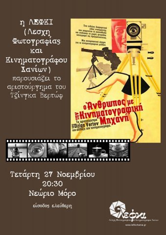 Την Τετάρτη 27 Νοεμβρίου στις 8.30 το βράδυ στο Νεώριο Μόρο θα προβάλει το αξεπέραστο αριστούργημα του Τζίνγκα Βερτώφ "Ο άνθρωπος με τη κινηματογραφική μηχανή".